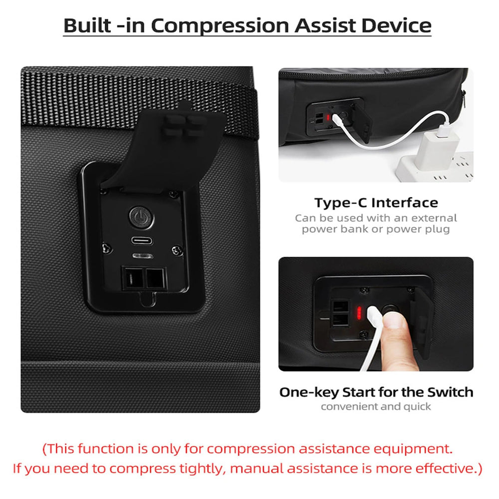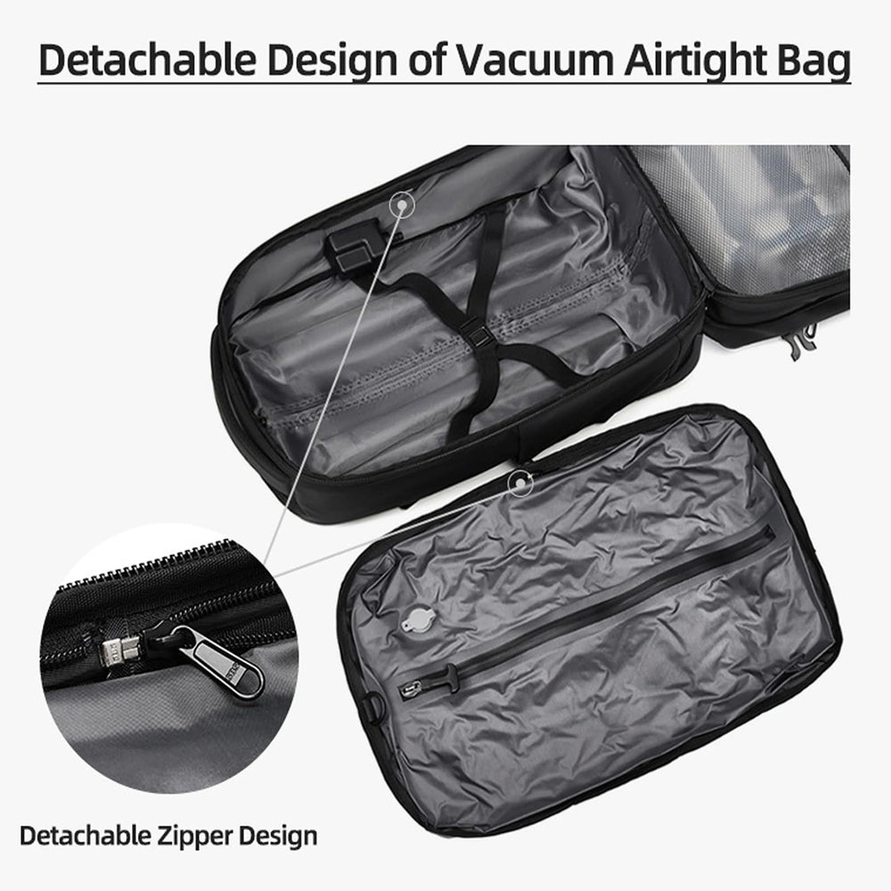 Transform your travel experience with this innovative wheeled backpack that combines versatility and smart design. Perfect for business travelers and frequent flyers, this carry-on compatible bag features built-in vacuum compression technology to maximize packing space. The waterproof exterior keeps your belongings protected, while the expandable design offers extra capacity when needed. Multiple organization compartments help sort your essentials, and the wheeled system makes airport navigation effortless. Switch between rolling the bag or wearing it as a backpack for ultimate convenience.