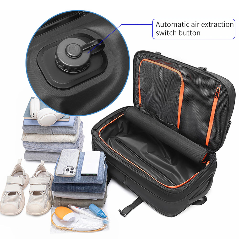 Tailored for contemporary travelers who value convenience and style, the VISNALEFRY backpack combines elegance with practicality seamlessly. Its built-in vacuum compression system lets you maximize packing space without hassle. The integrated weight indicator helps you avoid overweight charges, while expandable pockets offer additional storage whenever needed.